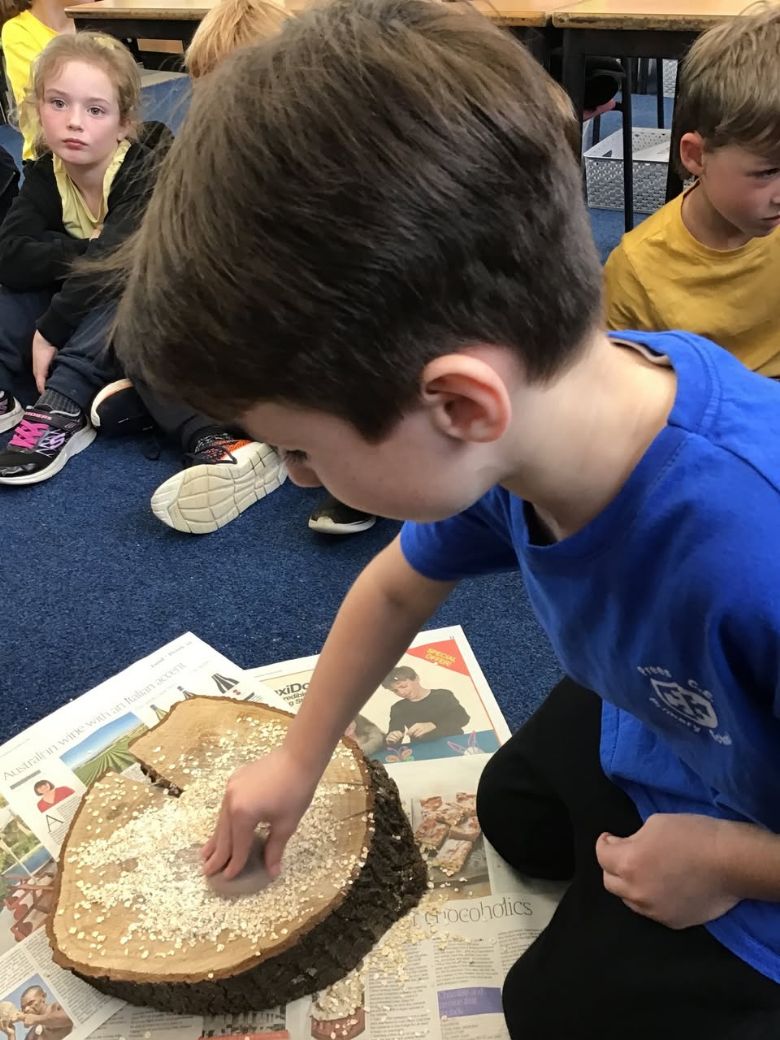 As part of their topic on the Stone Age, Year 3 have tried hand-grinding corn to make flour!