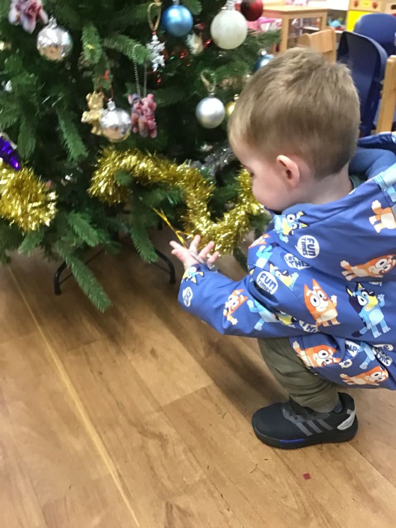 Nursery have started to get into the Christmas spirit by creating decorations for the tree at Prees Medical Centre and by decorating their own classroom.